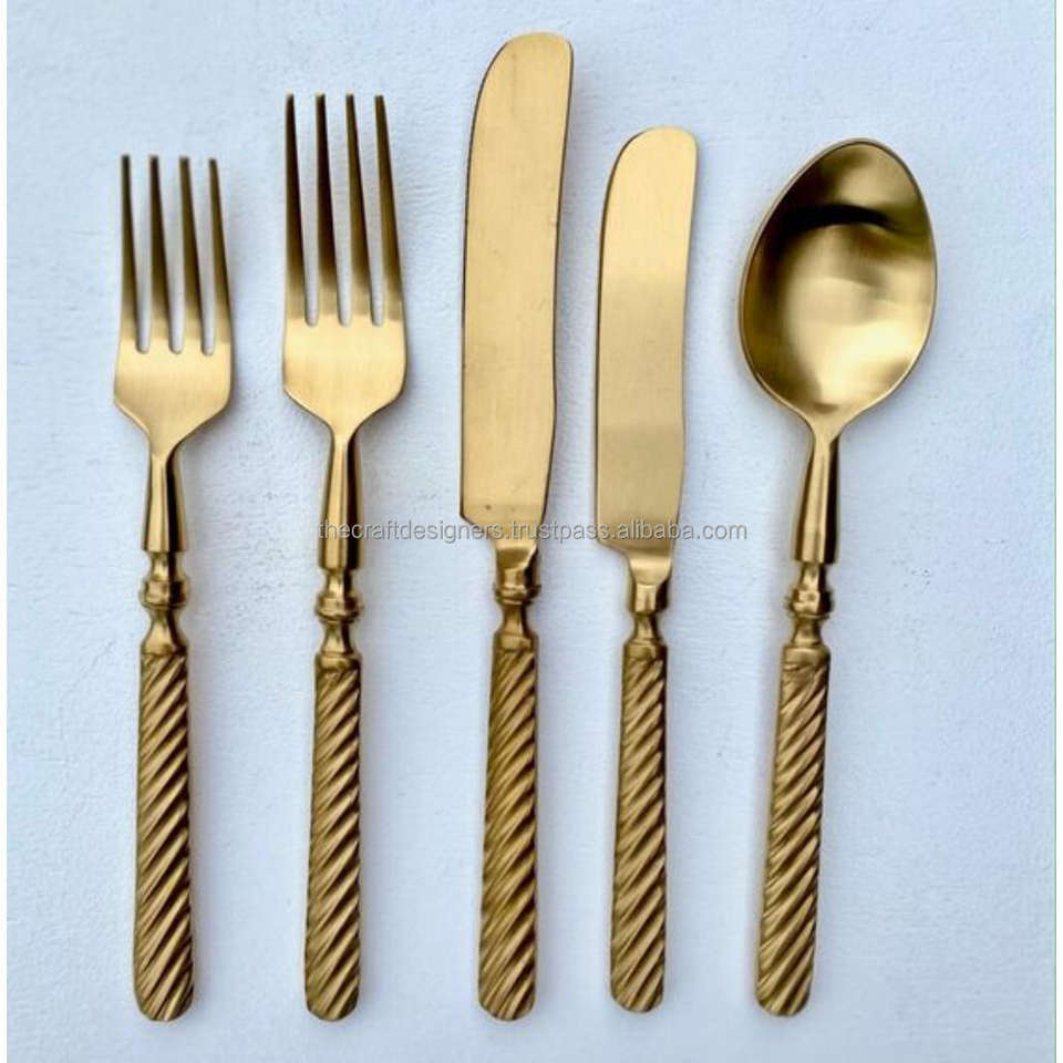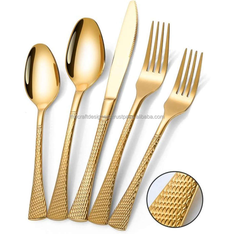 Ensemble de couverts de luxe en acier inoxydable pour mariage avec poignées à texture martelée Ensembles d'argenterie en or Décoration de table