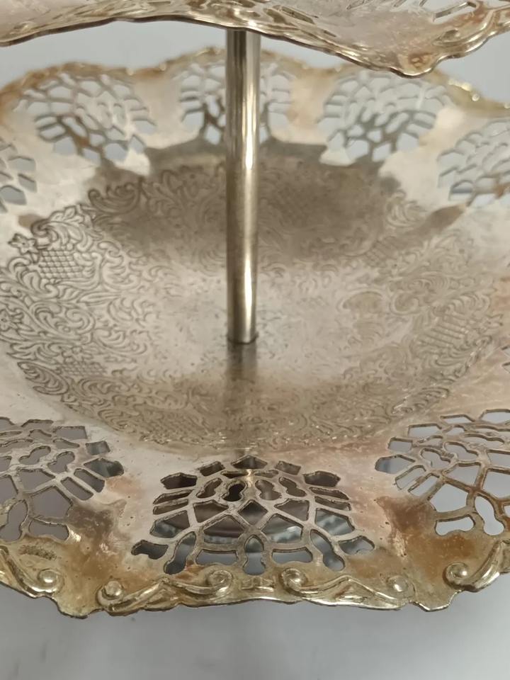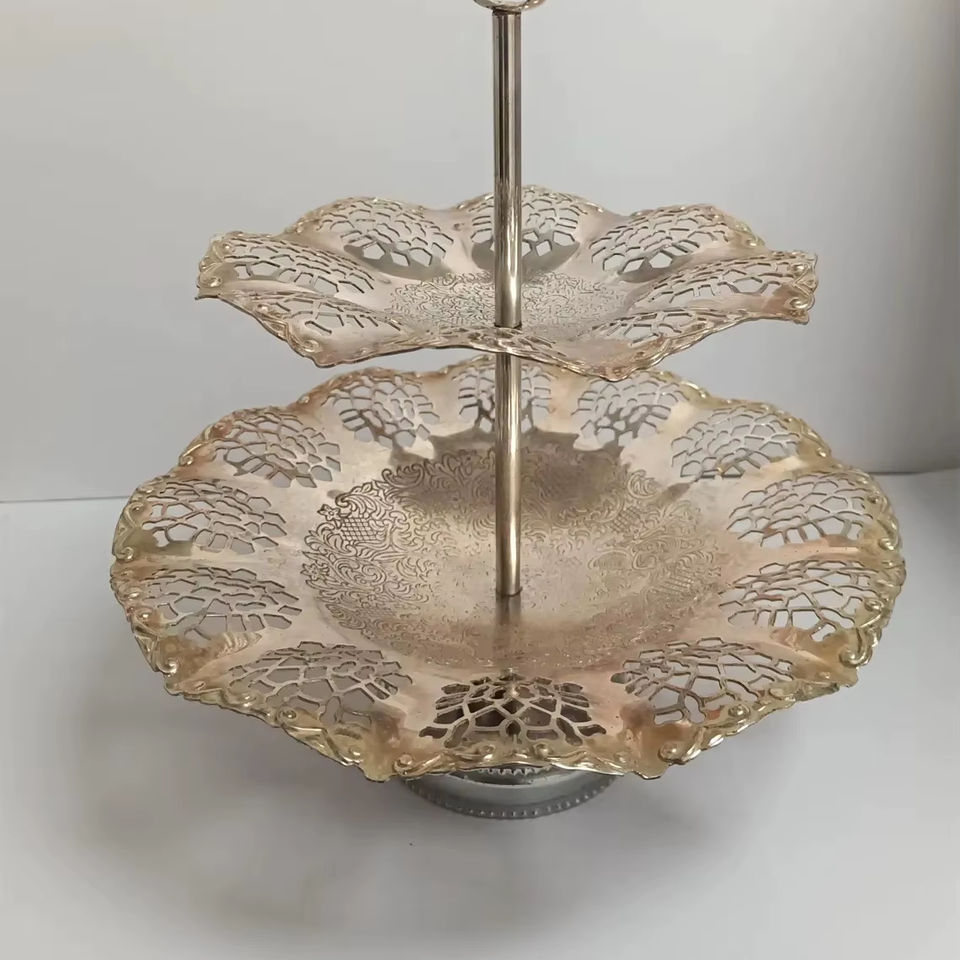 Support à gâteau à deux étages en or découpé, parfait pour la présentation de desserts, les buffets et la décoration intérieure, vente en gros en provenance d'Inde