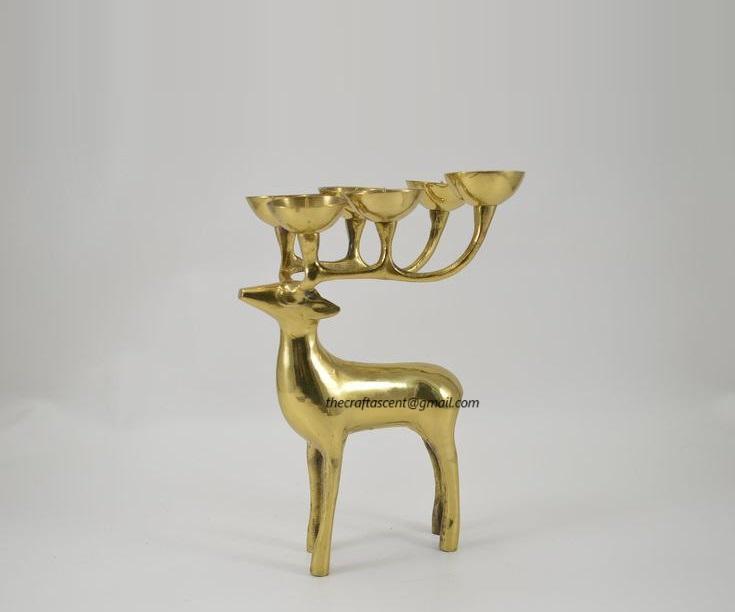 Porte-lampe en T décoratif en or ornement de renne pour la décoration de Noël à la maison artisanat en métal élégant pour la décoration de table de salon