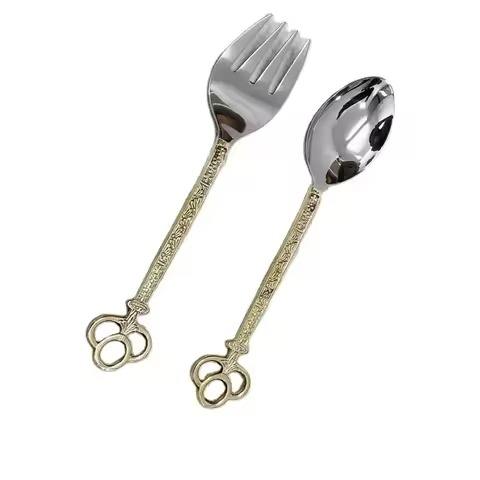 Serveur à salade ou cuillères à salade à poignée design en or pour la maison, l'hôtel et le restaurant utilisent des cuillères de service faites à la main