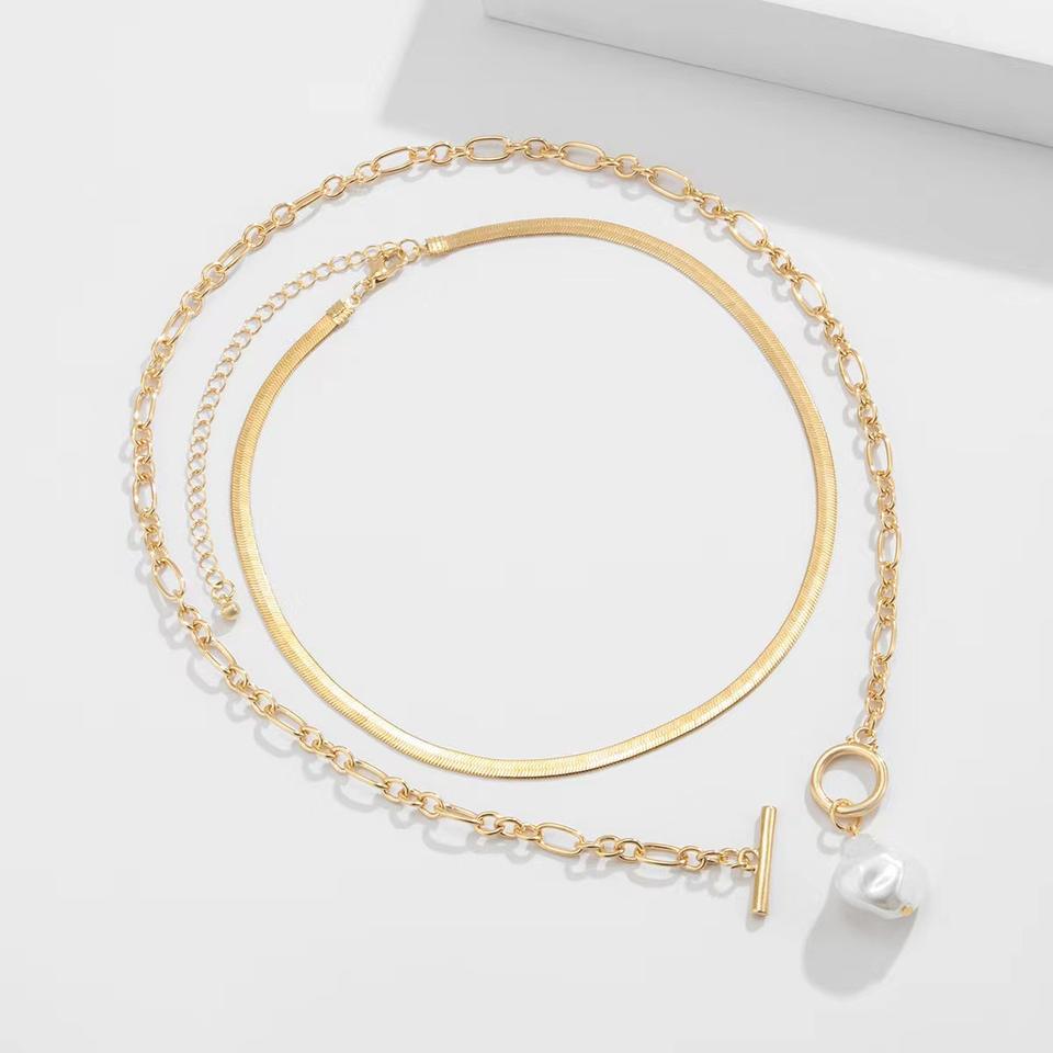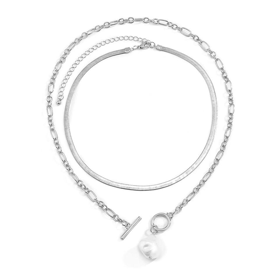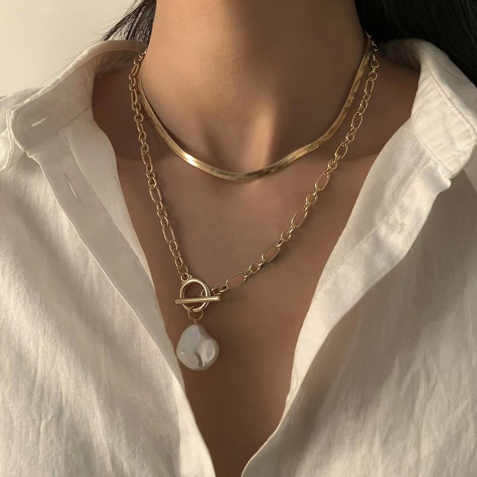 Collier double couche en or avec pendentif perle baroque pour femme, bijoux de fête