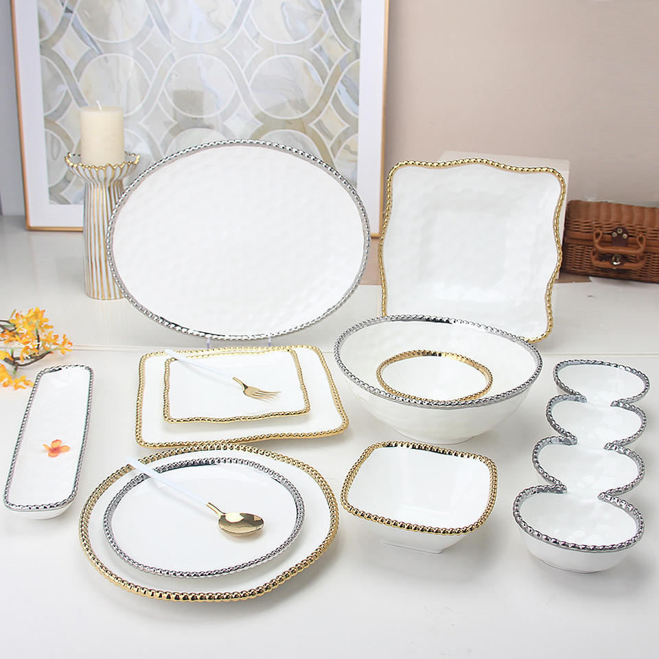 Vaisselle en céramique à bord doré, assiette occidentale pour la maison, bol à steak et salade de fruits, vaisselle de luxe pour mariage et restaurant