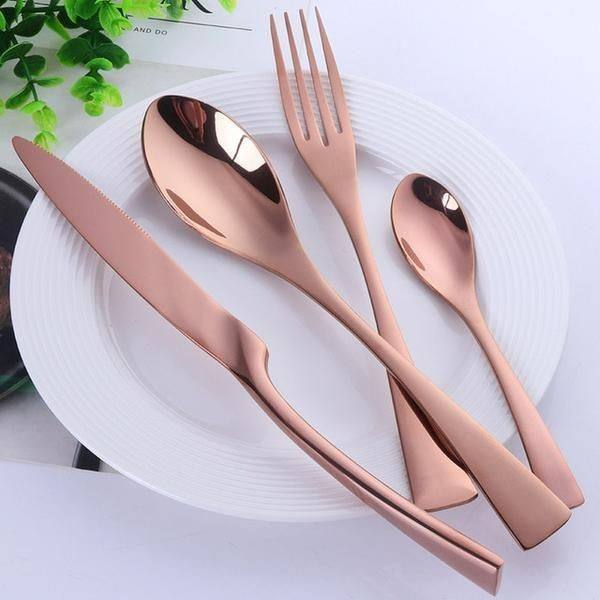Ensemble de couverts en acier avec gravure en or, couverts royal, ensemble de couverts en or pour mariage, cuillères, fourchettes, couteaux en acier inoxydable