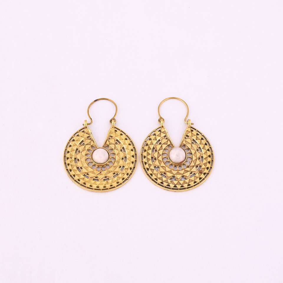 Boucles d'oreilles créoles en laiton plaqué or avec motif circulaire en filigrane doré, style tendance, taille 53x37MM