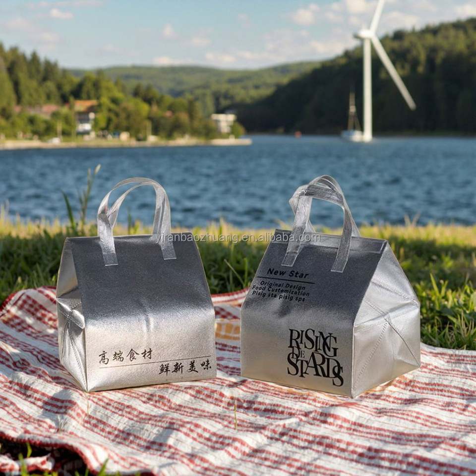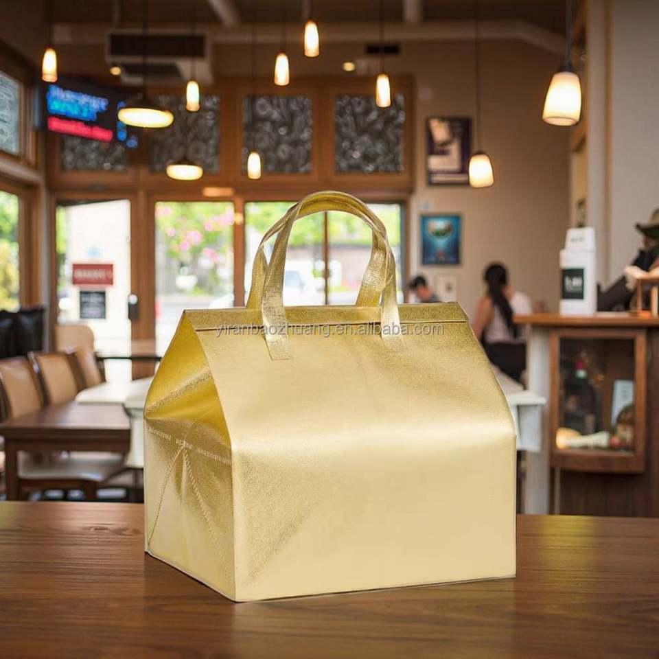 Sac isotherme non tissé avec poignée, film doré, imperméable, logo personnalisé, pour gâteaux, avec ruban adhésif