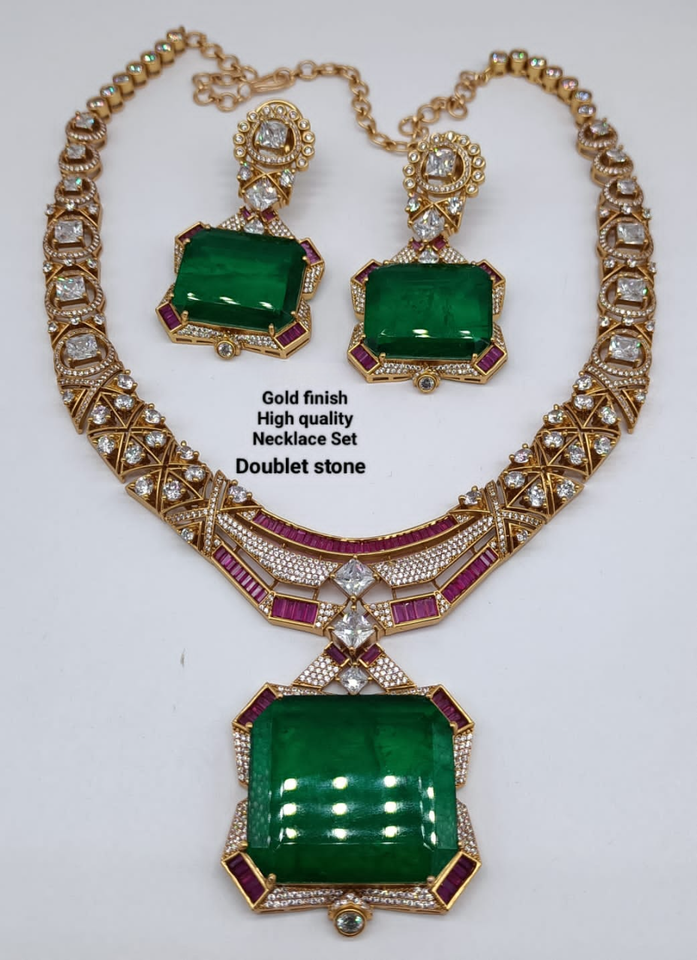 Ensemble de collier de haute qualité avec finition dorée et pierre doublette