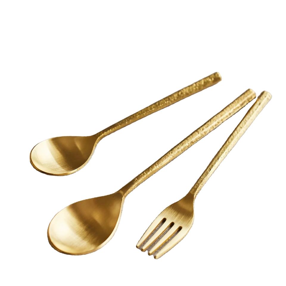 Ensemble de couverts en acier inoxydable à poignée texturée finition dorée avec cuillère et fourchette pour la salle à manger, la cuisine et le service