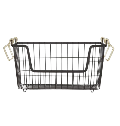 Panier de rangement en métal avec fil métallique solide en fer métallique de forme personnalisée antirouille léger de finition dorée