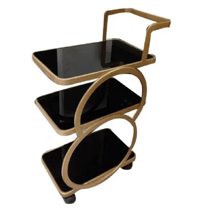Chariot en métal fini or Chariot de service miroir à deux niveaux Vente à chaud Taille personnalisée Nouveau chariot en métal