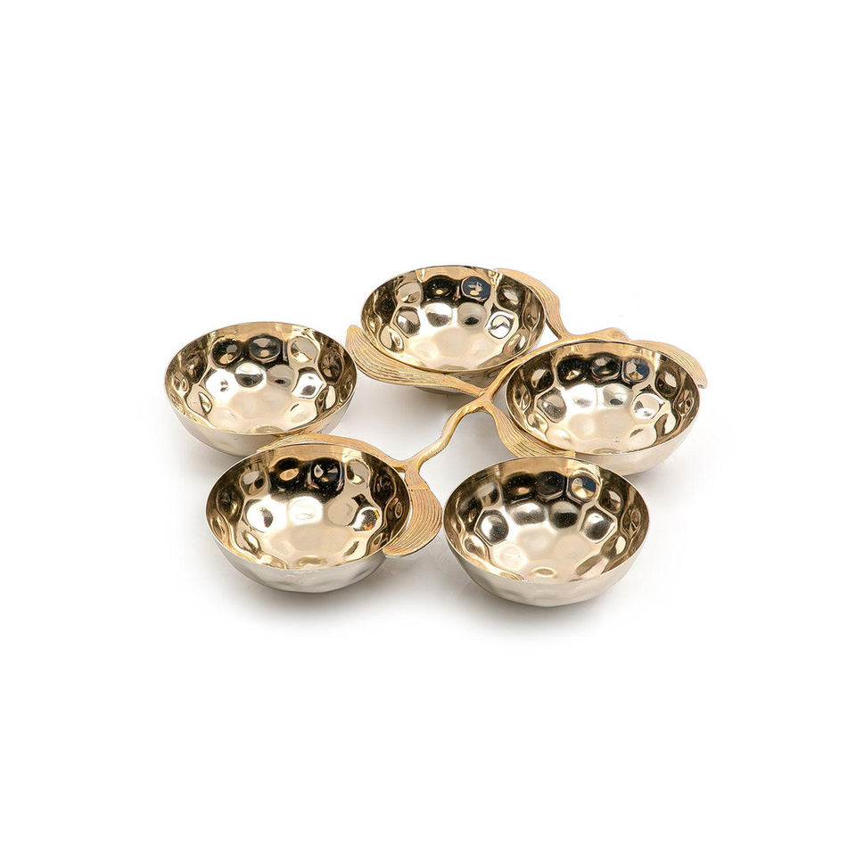 Plateau à collation moderne à cinq bols Finition martelée dorée avec motif de feuilles Bol à fleurs personnalisable Centre de table de service