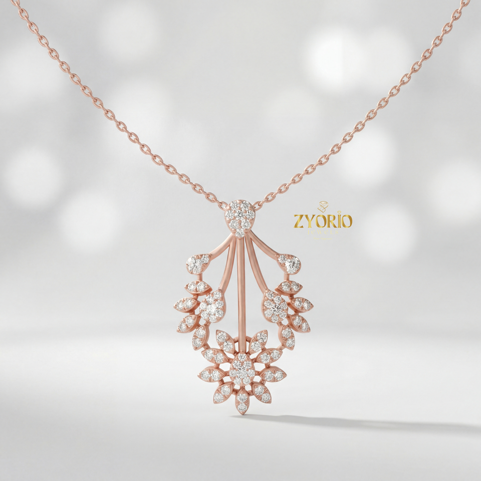 Pendentif Diamant Éclat Floral Doré avec Chaîne à Maillons Plaqué Or pour Anniversaire de Mariage et Fêtes Féminines - Design Luxe Élégant