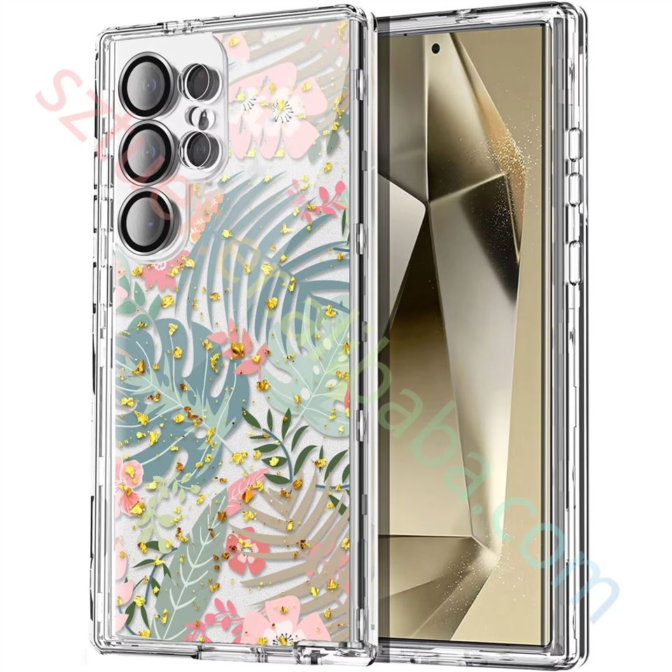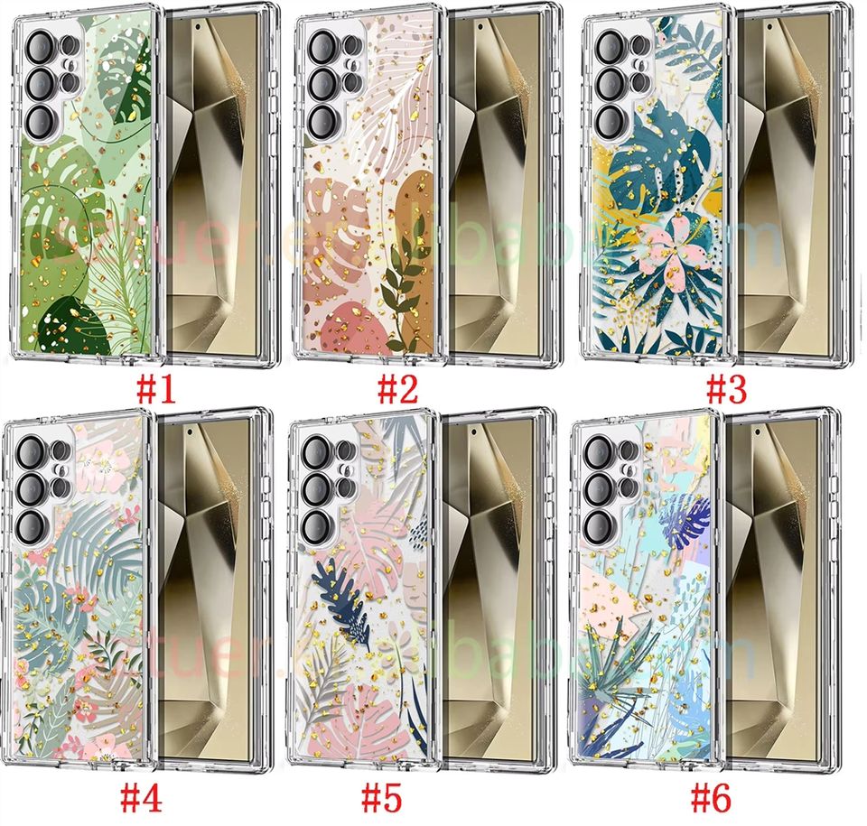Étui de téléphone robuste à trois couches avec design en feuille d'or pour S24 S25 Ultra S26 Ultra, protection 3 en 1 à 360 degrés, fundas