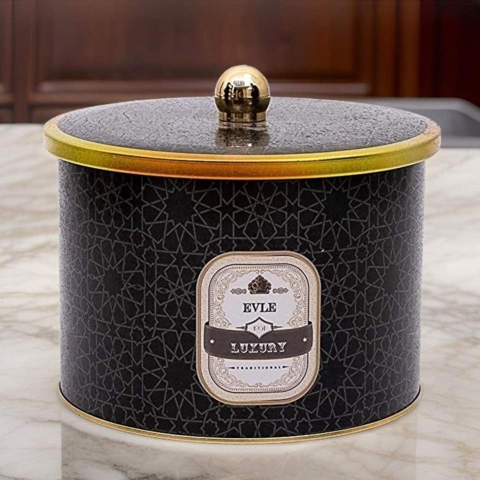 Poignée de bouton à motif géométrique doré 175x130mm Boîte ronde en métal pour le stockage des aliments Fond noir