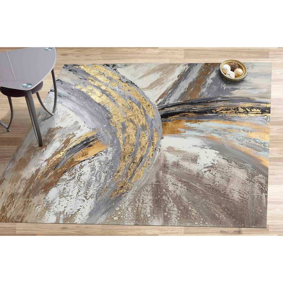 Tapis abstrait gris doré : Tapis d'appoint moderne à motifs artistiques, Tapis en chenille