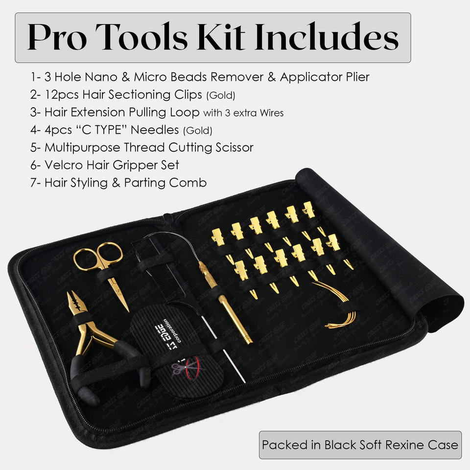 Outil d'extension de cheveux dorés 3 trous Micro Beads Remover Plier 2pcs Selecting Clips Pull Loop C Needles Cutting Scissor Gripper
