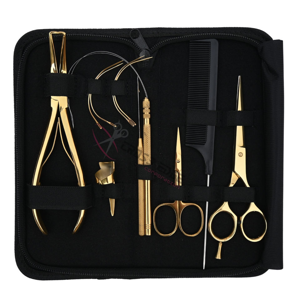 Matériel:Kit d'outils pour extensions capillaires en acier inoxydable chirurgical doré