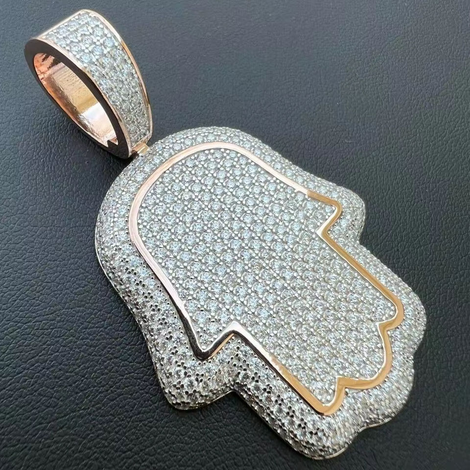 Pendentif main de Hamsa en or serti de zircon, mode féminine, plaqué or 18 carats, plaqué argent 925, classique vintage