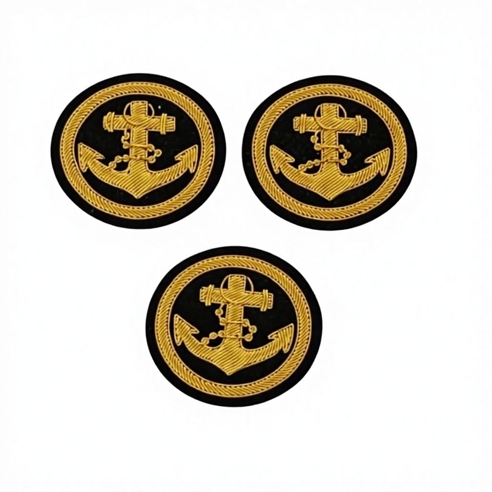 Patch / Badge en feutre non tissé, motif ancre brodé à la main en or, écologique, taille et forme personnalisables