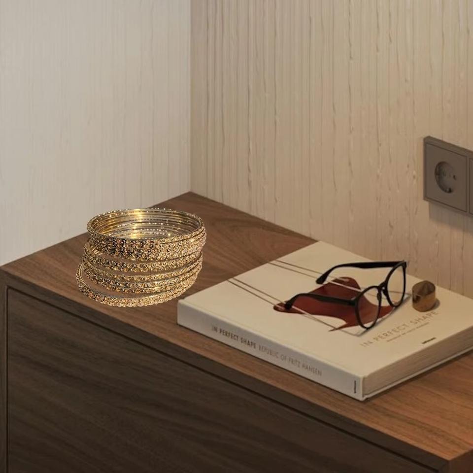 Bracelets indiens faits à la main en or 12 pièces/ensemble Bracelets Churi Bracelets de perles à la mode pour femmes et filles
