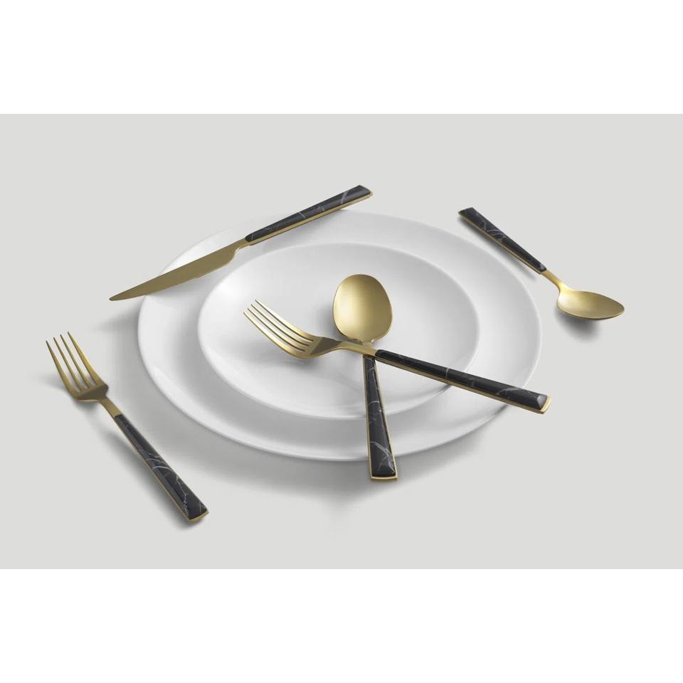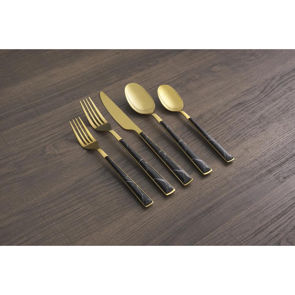 Ensemble de couverts à tête dorée avec poignée noire design Couverts élégants pour dîner, dessert, salade, cuisine, mariage et restaurant