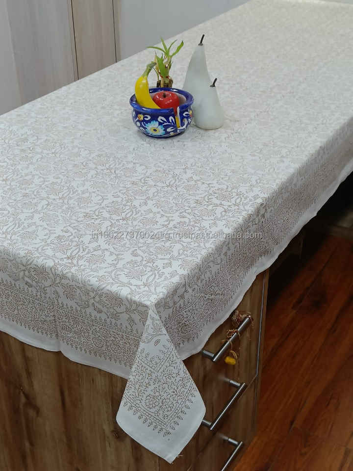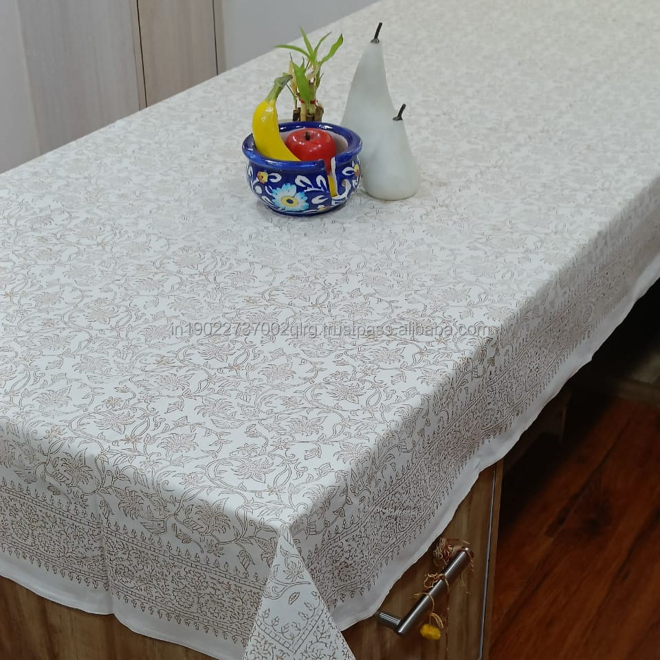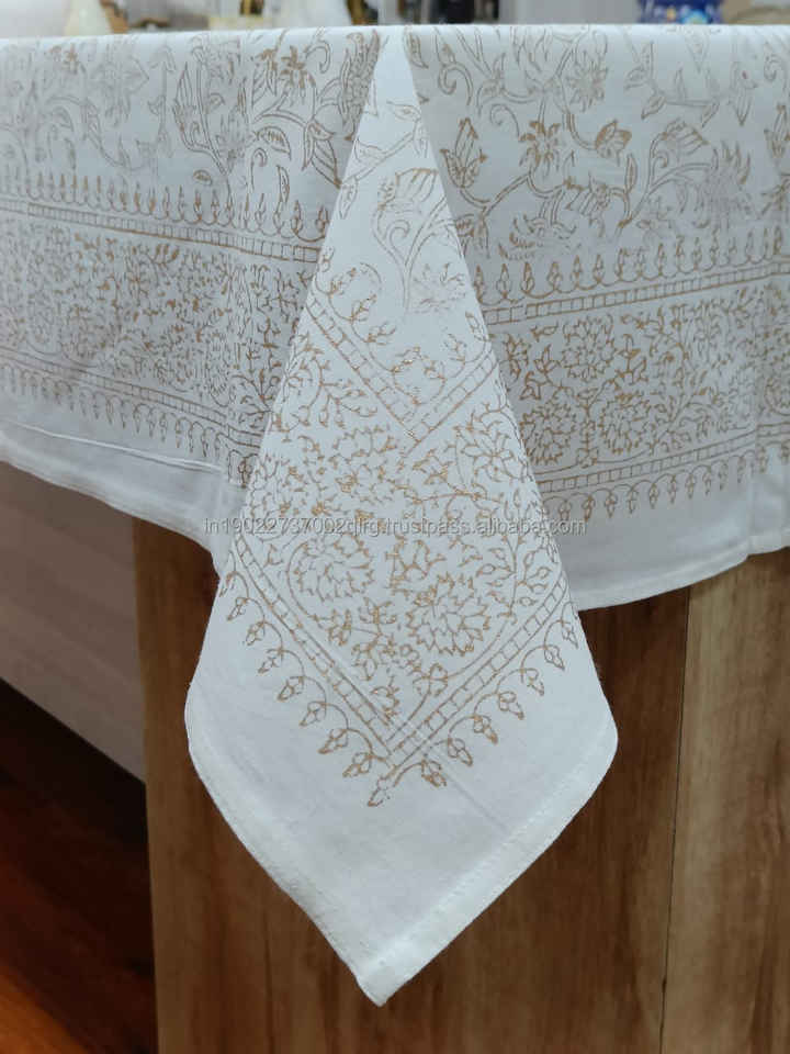 Nappe 100% Coton Véritable Imprimée à la Main Motif Jaal Doré Faite à la Main Lavable Absorbante avec Emballage Personnalisé