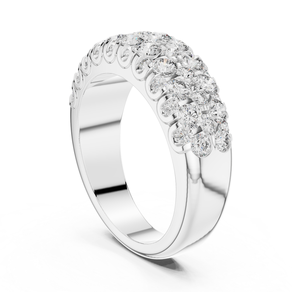 Bague en or avec grappe de diamants, Bague de luxe à large bande et plusieurs rangées de diamants pour anniversaire, Bijou élégant en diamant pour femme