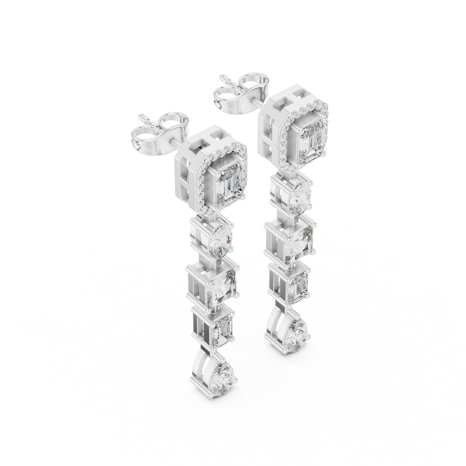 Boucles d'oreilles pendantes en diamant cultivé en laboratoire, forme géométrique multi-formes, émeraude et diamant rond, bijoux en diamant pour femmes