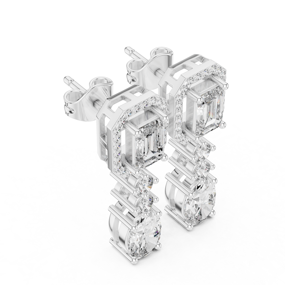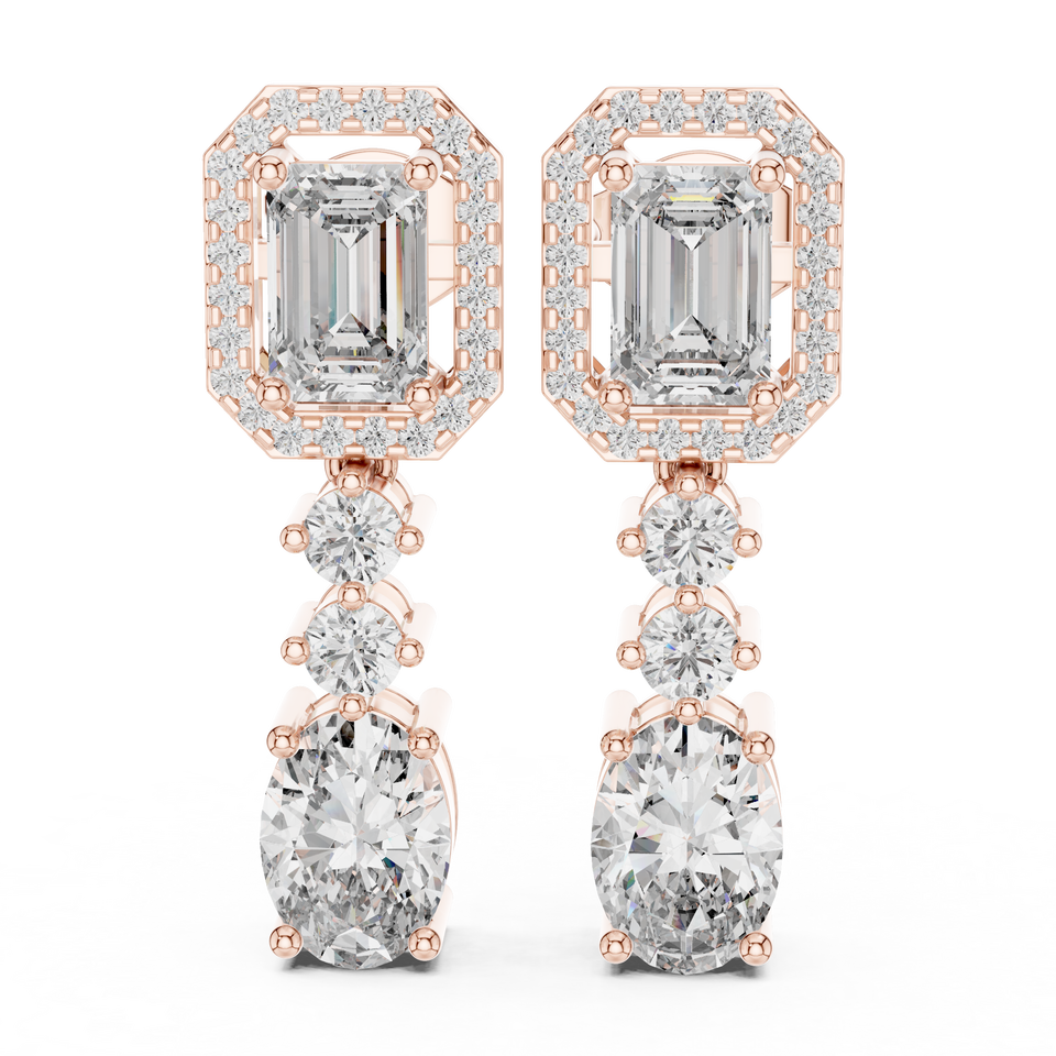 Boucles d'oreilles pendantes en or avec diamant de laboratoire taille émeraude et halo, boucles d'oreilles de mariée de luxe, bijoux de mariage élégants en diamant