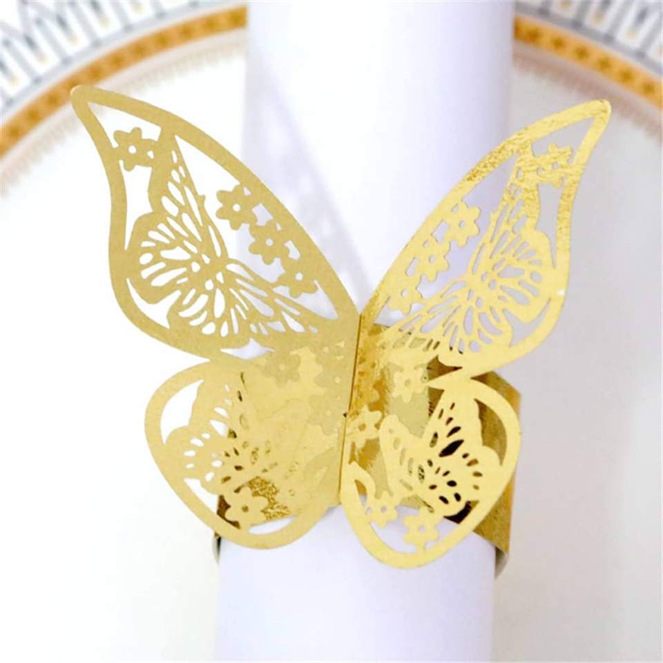 Porte-serviettes en papier découpé au Laser doré, anneaux de serviette en papier papillon 3D pour bricolage, nœuds de ceinture, nappe, serviettes en papier