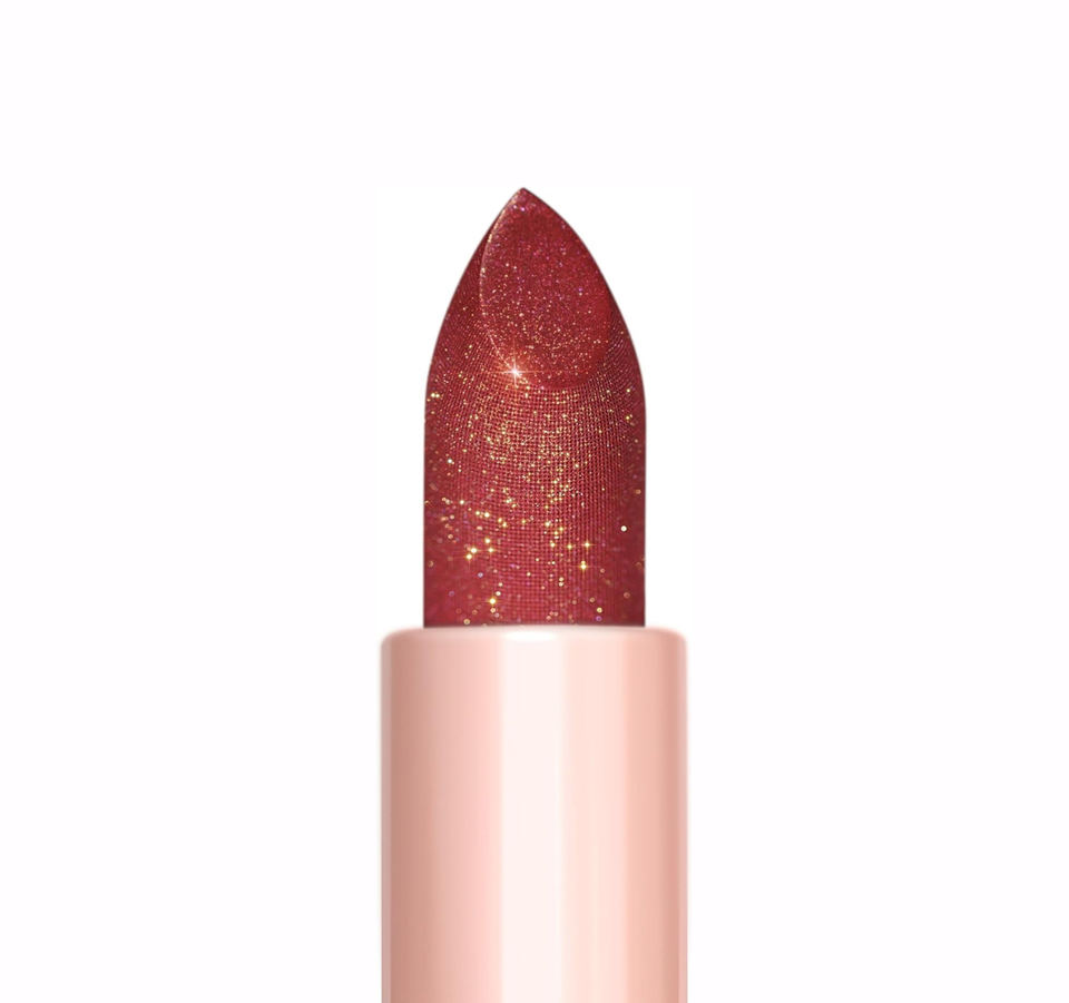 Rouge à lèvres à paillettes dorées / Indispensable pour le maquillage de fête.
