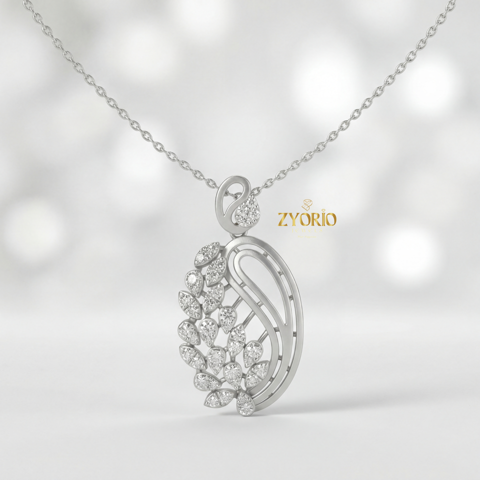 Chaîne en or avec pendentif feuille de paisley et diamants étincelants, élégance naturelle pour fiançailles, mariage et anniversaire