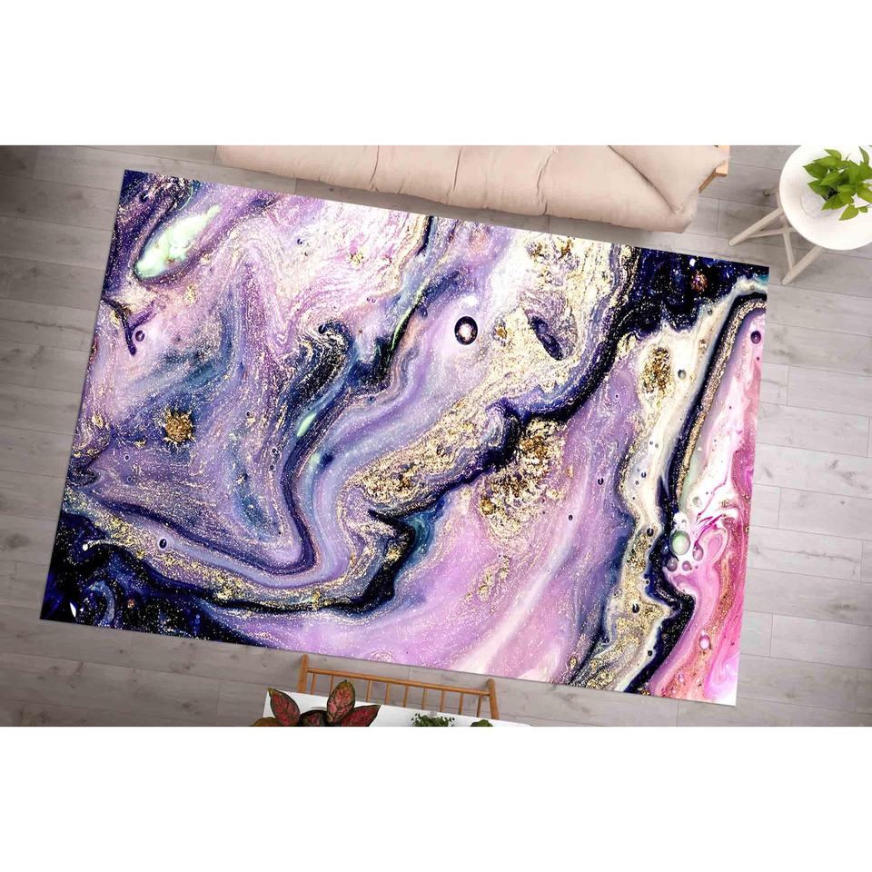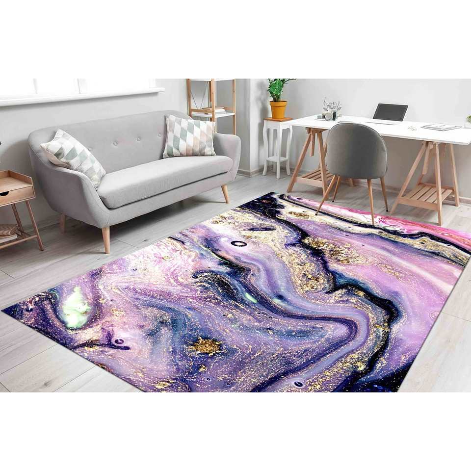 Tapis en marbre doré : Tapis d'appoint antidérapant à motif tourbillon violet, tapis doux non tissé