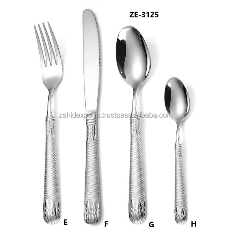 Ensemble de couverts de luxe de style américain de qualité hôtelière élégante en acier inoxydable mat doré 24 pièces Argent poli Zahid Exports