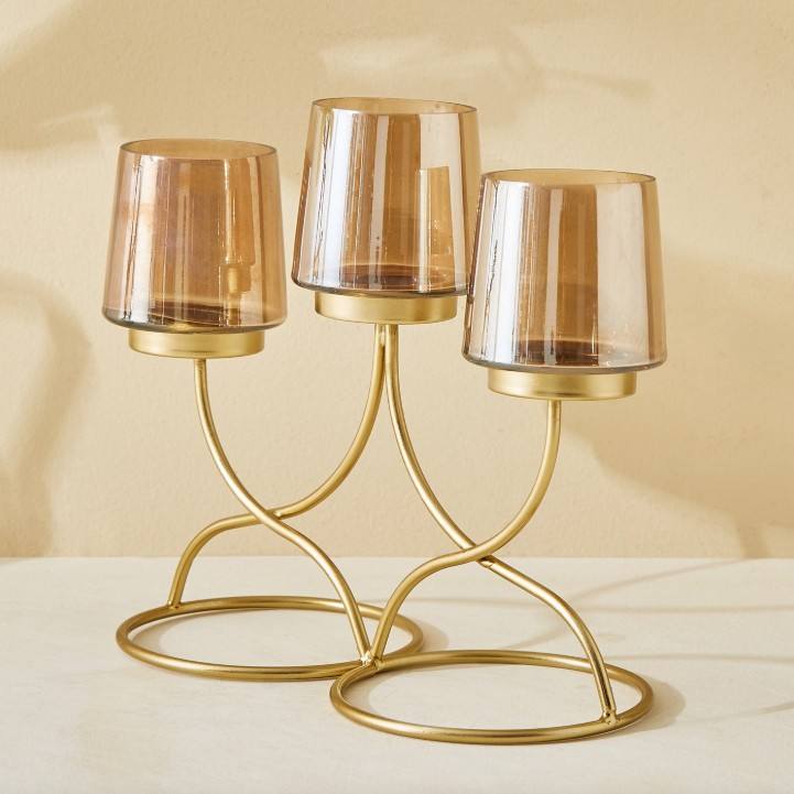 Porte-bougie à 3 bras fait main, écologique, avec verre ambré, décoratif, pour Noël et Pâques