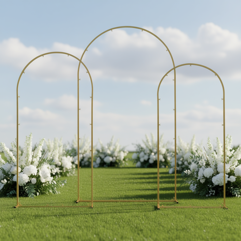 Ensemble de supports d'arche en métal doré, 3 pièces, 7,2 x 6,6 x 6 pieds, montage facile, décoration de cérémonie de mariage
