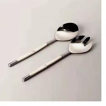 Couverts en métal doré avec poignée en résine blanche pour la maison, l'hôtel et le restaurant, ustensiles de cuisine décoratifs