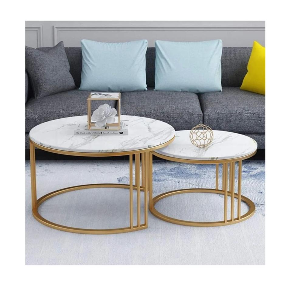 Ensemble de tables gigognes en métal doré avec surface texturée et base incurvée artistique rehaussant l'apparence haut de gamme dans les espaces domestiques élégants