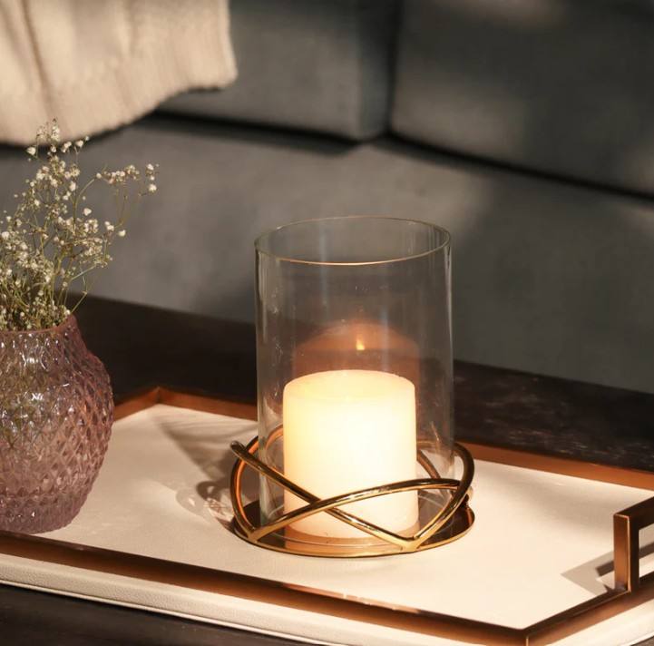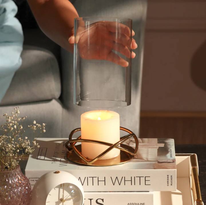 Support de bougie décoratif en fil métallique doré avec cheminée en verre, fait main, écologique, pour bougies chauffe-plat, pour Noël, Pâques et la décoration intérieure