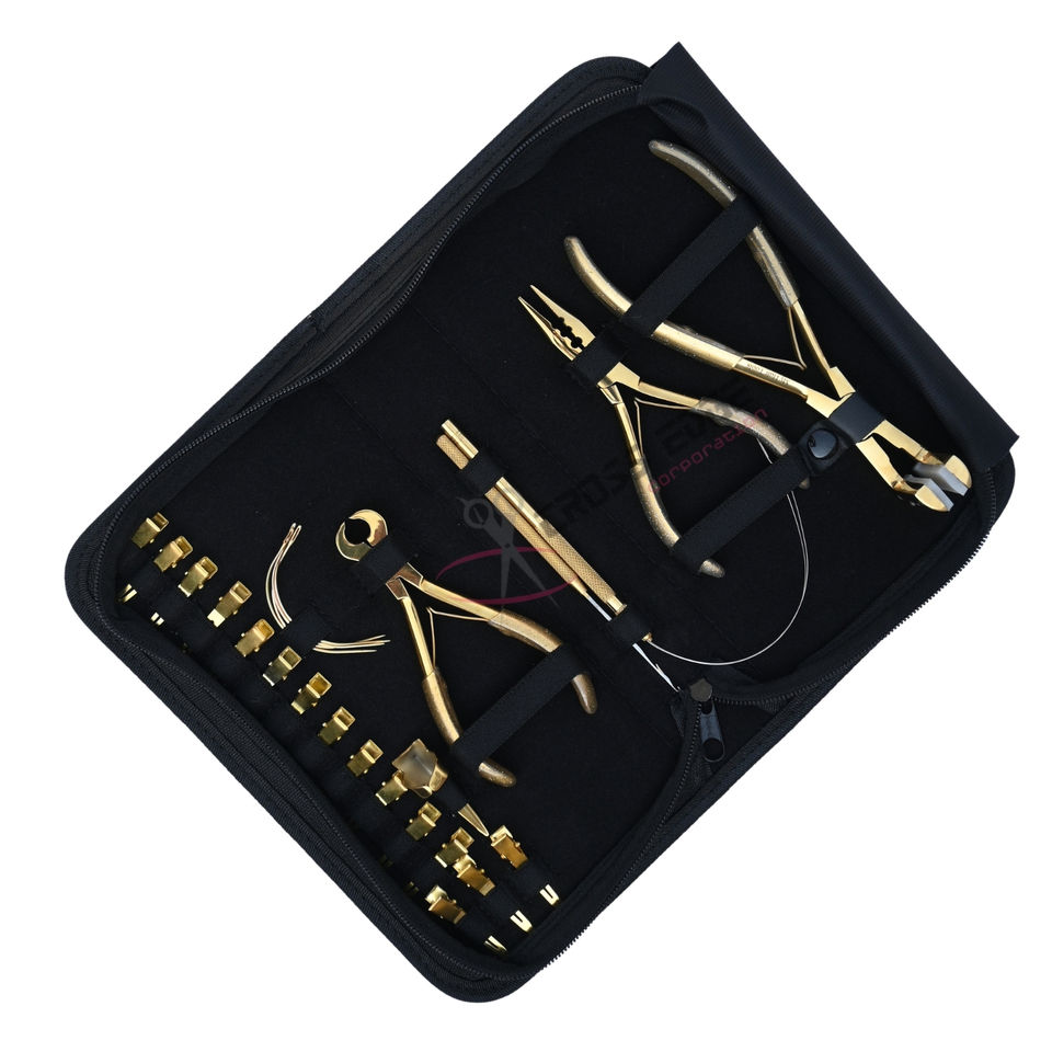Nom:Ensemble d'outils pour extensions de cheveux dorés avec pince à sertir pour micro-billes