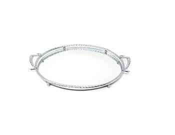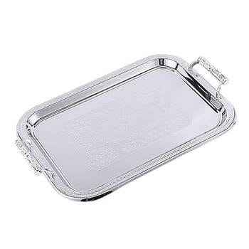 Plateau de service rectangulaire en métal doré miroir, décoratif avec poignées, pour mariage, fête, thé, café, table