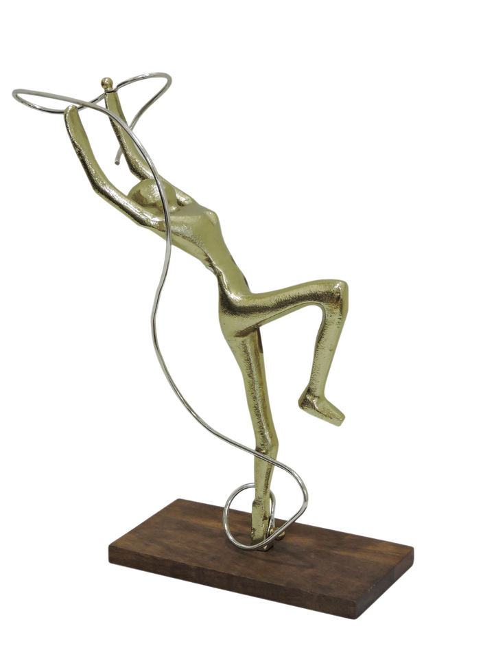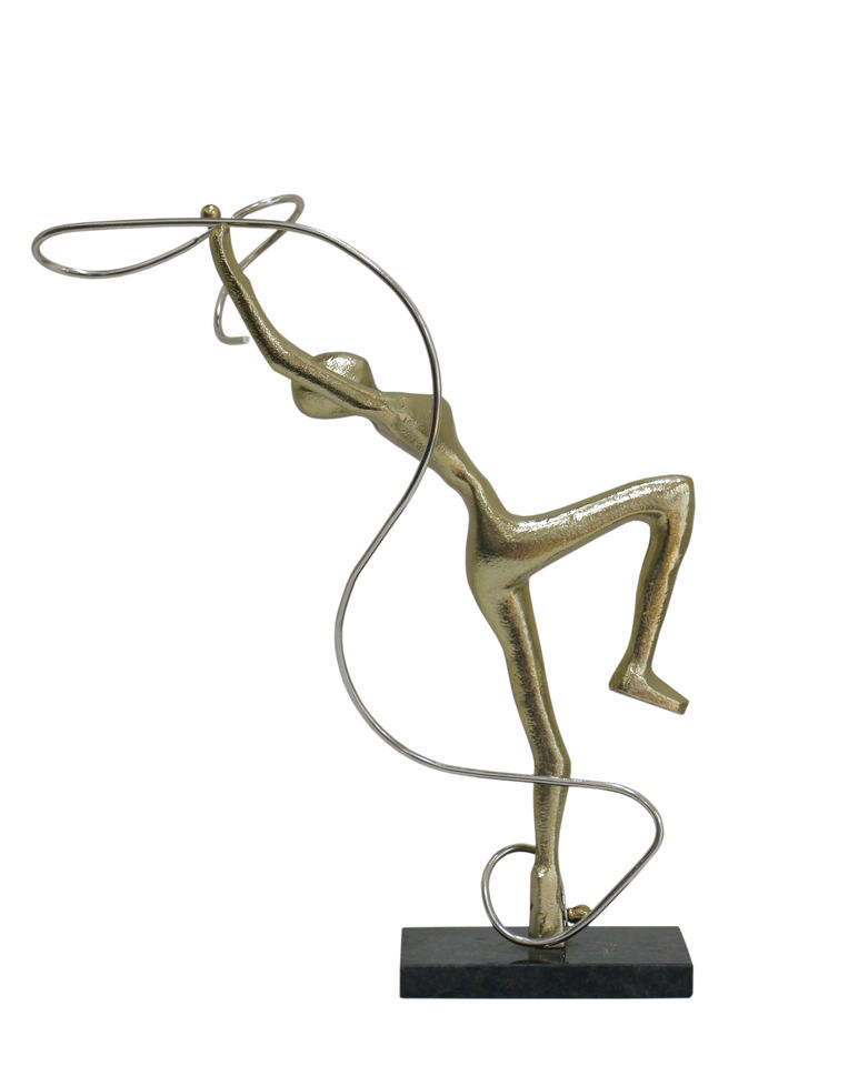 Sculpture Moderne Abstraite Danseuse au Ruban Dorée, 16 Pouces, en Aluminium, Statue Figurative Contemporaine pour Décoration Maison, Bureau, Art et Ornement