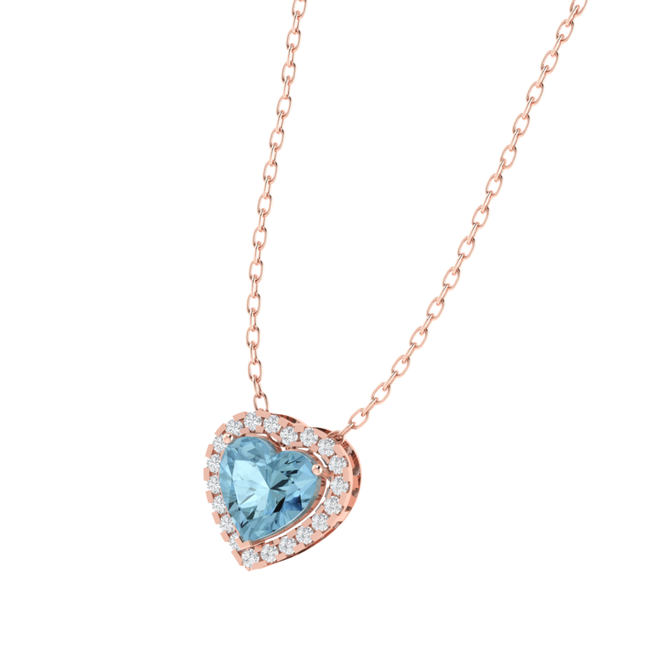 Chaîne plaquée or de 11 mm avec pendentif en aquamarine taille cœur et 20 zircons cubiques, bijoux en argent sterling fin