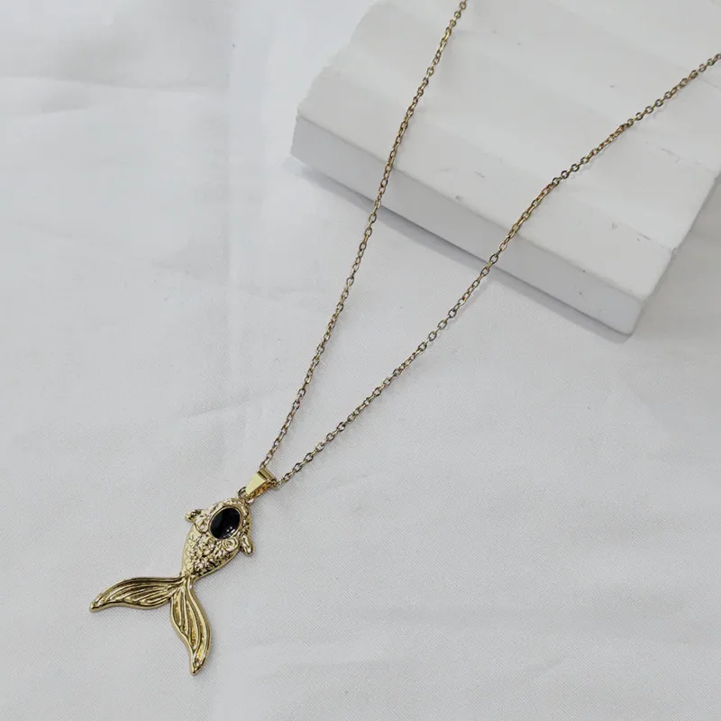 Gold Plated 304 Stainless Steel Water Plated Fish Necklace Featuring Vintage Sweater Chain Waterproof And Non Fading Cable Chain