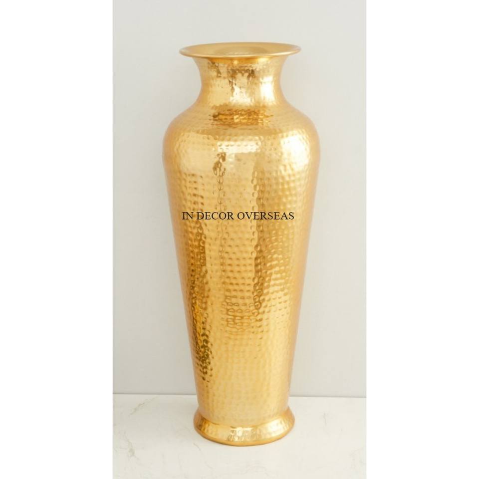 Beau vase à fleurs en aluminium moulé plaqué or pour la maison et l'hôtel, fournitures de décoration de centre de table de salle à manger