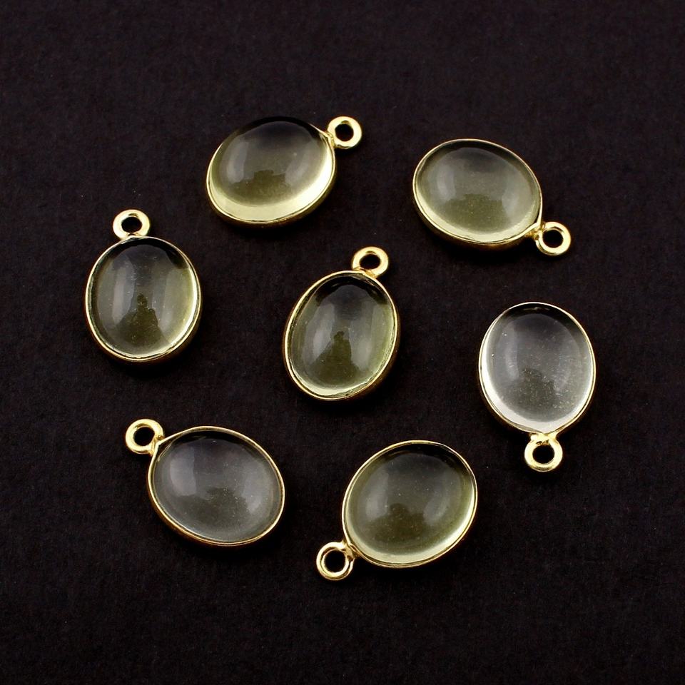 Connecteur de chaîne plaqué or avec pierre de quartz citron lisse, coupe ovale, composants de bijoux faits à la main pour pendentif DIY