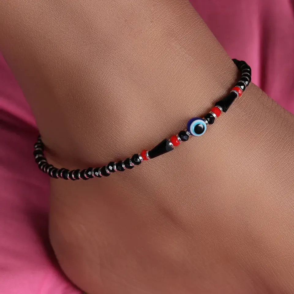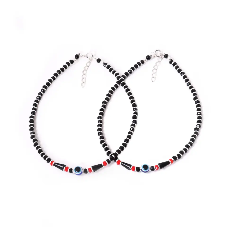 Gold Plated Black Beaded Evil Eye Anklet Bohemian Style Summer Jewelry Custom Inlay Technology Made of Brass for Women