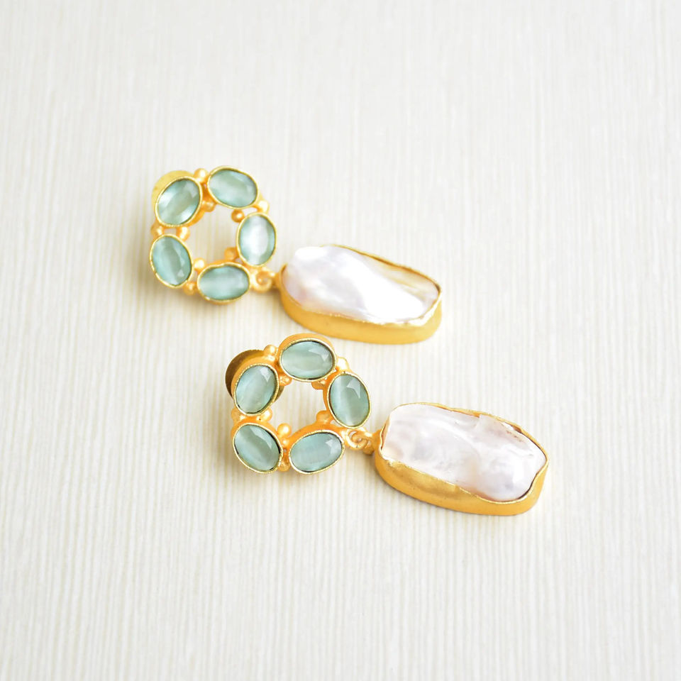 Cerceaux en laiton plaqué or en gros, perles, cristaux de guérison authentiques, texture de laiton mat, style avant-gardiste, parfait pour la vente en gros