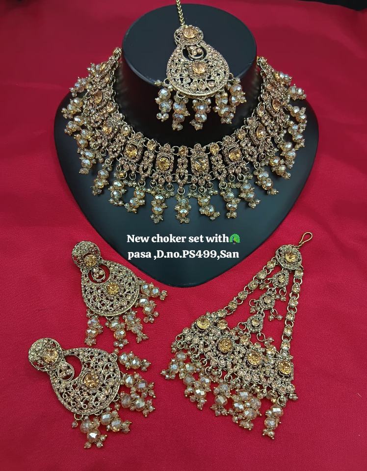 Products Name:Gold-Plated Bridal Shadow Choker Set with Earrings & Maang Tikka