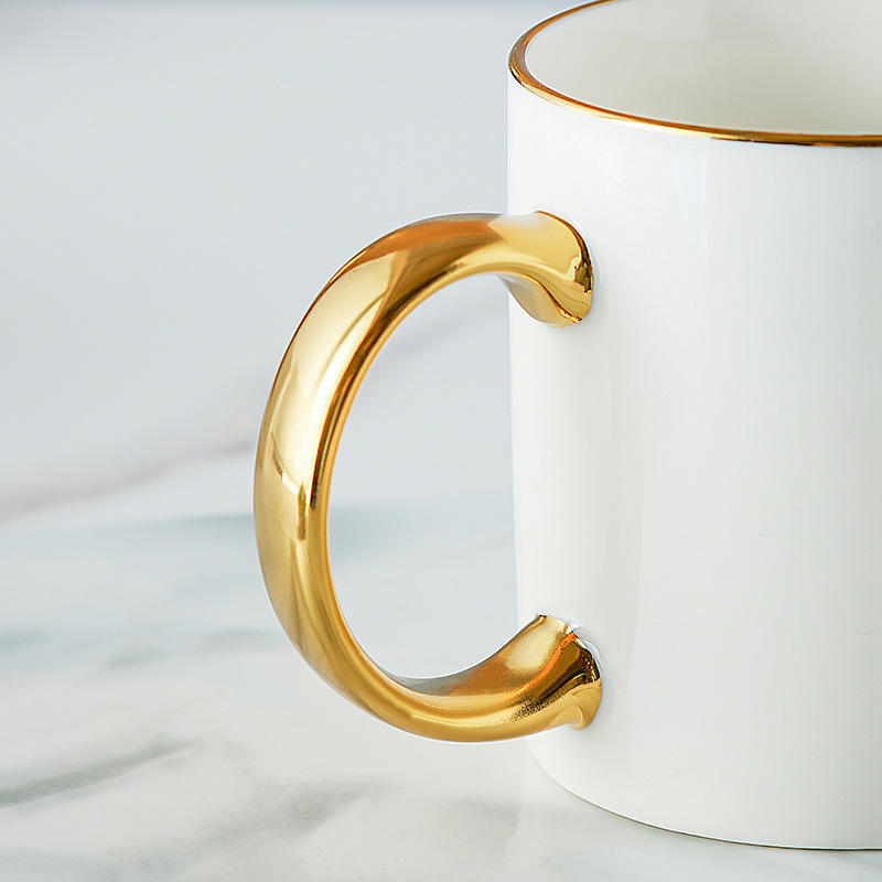 Mug en céramique plaqué or avec bord et anse dorés, couleur unie, cadeau de graduation, cadeau d'affaires, tasse individuelle