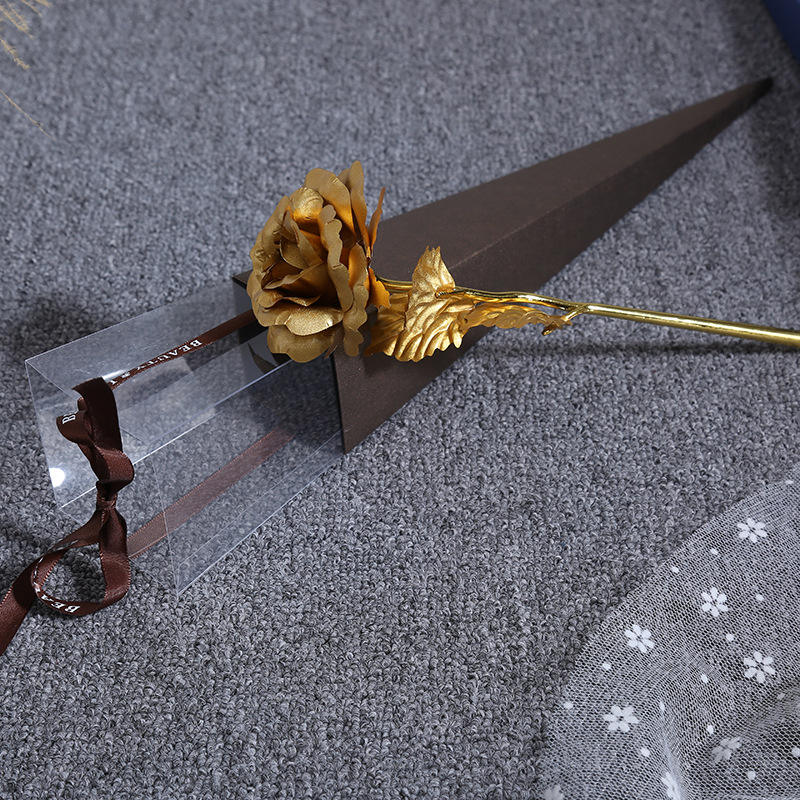 Roses artificielles décoratives plaquées or, fleurs éternelles pour toujours, cadeau de Noël pour la Saint-Valentin avec boîte cadeau
